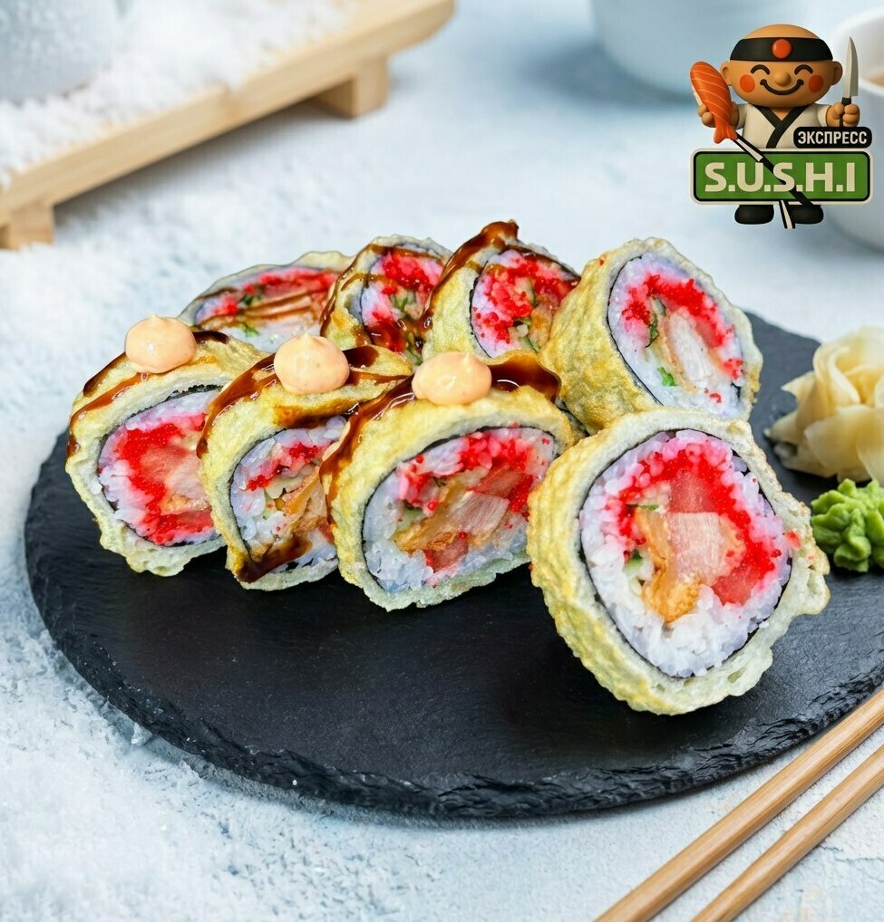 Ролл "Лава" – это взрыв вкусов с хрустящим жареным тунцом, нежным снежным крабом, свежим огурцом и ароматным рисом, щедро политым фирменным соусом Лава Острый, кремовый и невероятно аппетитный – идеальный выбор для ценителей ярких суши!: 270-280 г. 500ккал Б: ~18г Ж: ~30 г У: ~45 г 8шт. ЦЕНА: 840 руб