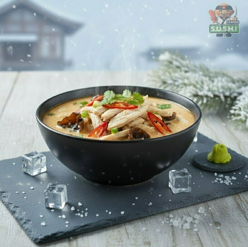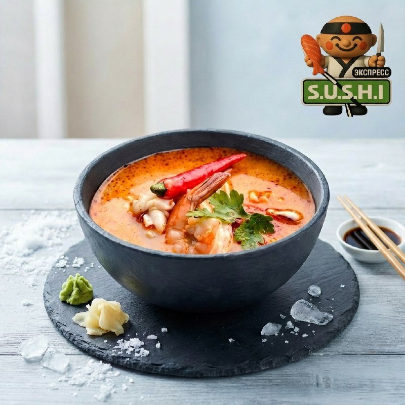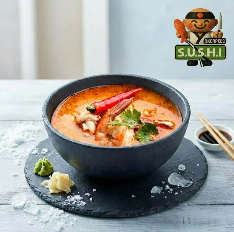 Том Ям с морепродуктами Погрузитесь в мир азиатской кухни с нашим легендарным супом Том Ям. В его основе — нежные креветки, гребешки и мидии. Пикантный бульон с перцем чили, ароматной кинзой и свежим зелёным луком дарит яркий вкус и согревает душу. Это истинное наслаждение для всех, кто ценит восточные блюда! Цена: 640 рублей.