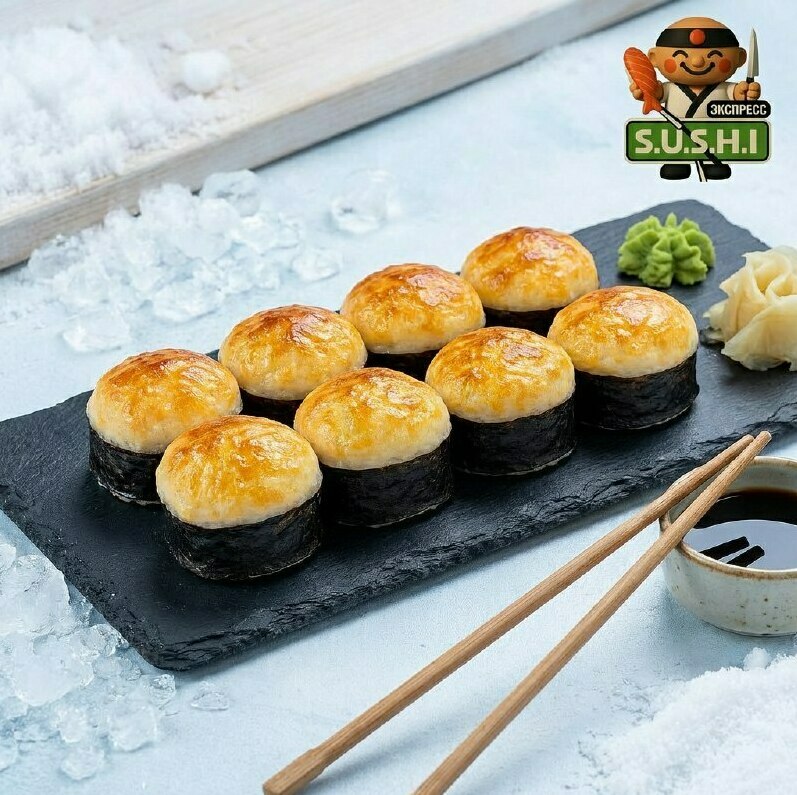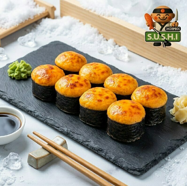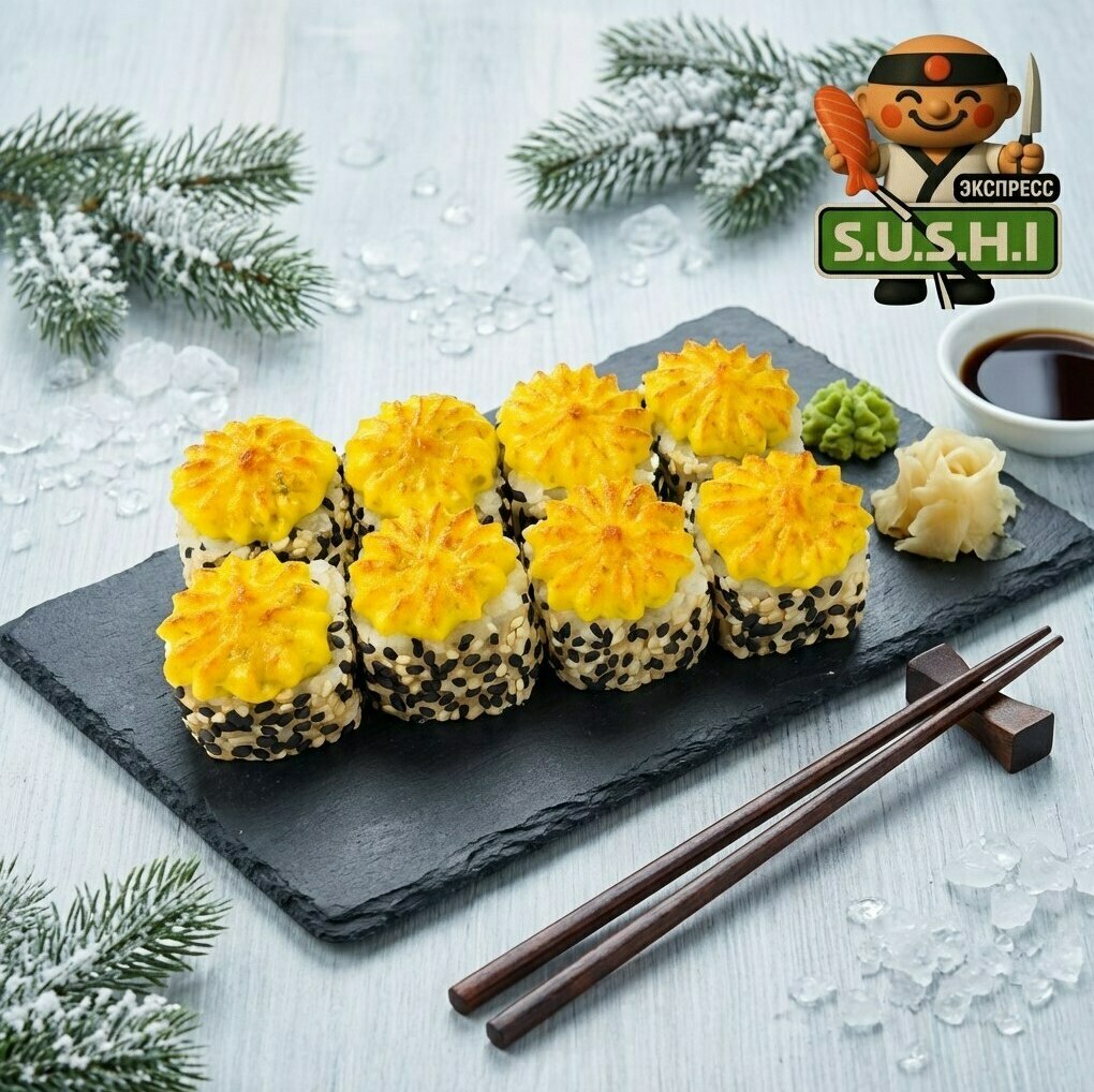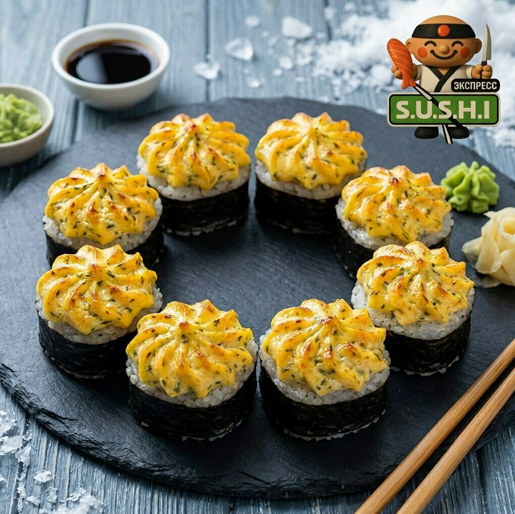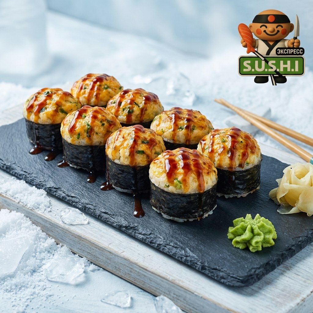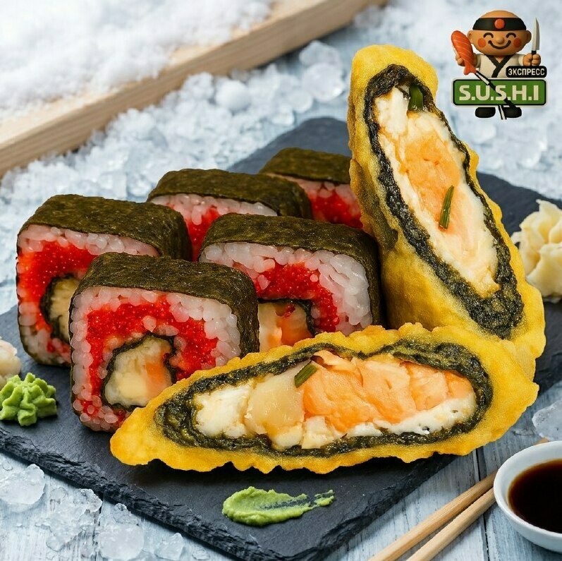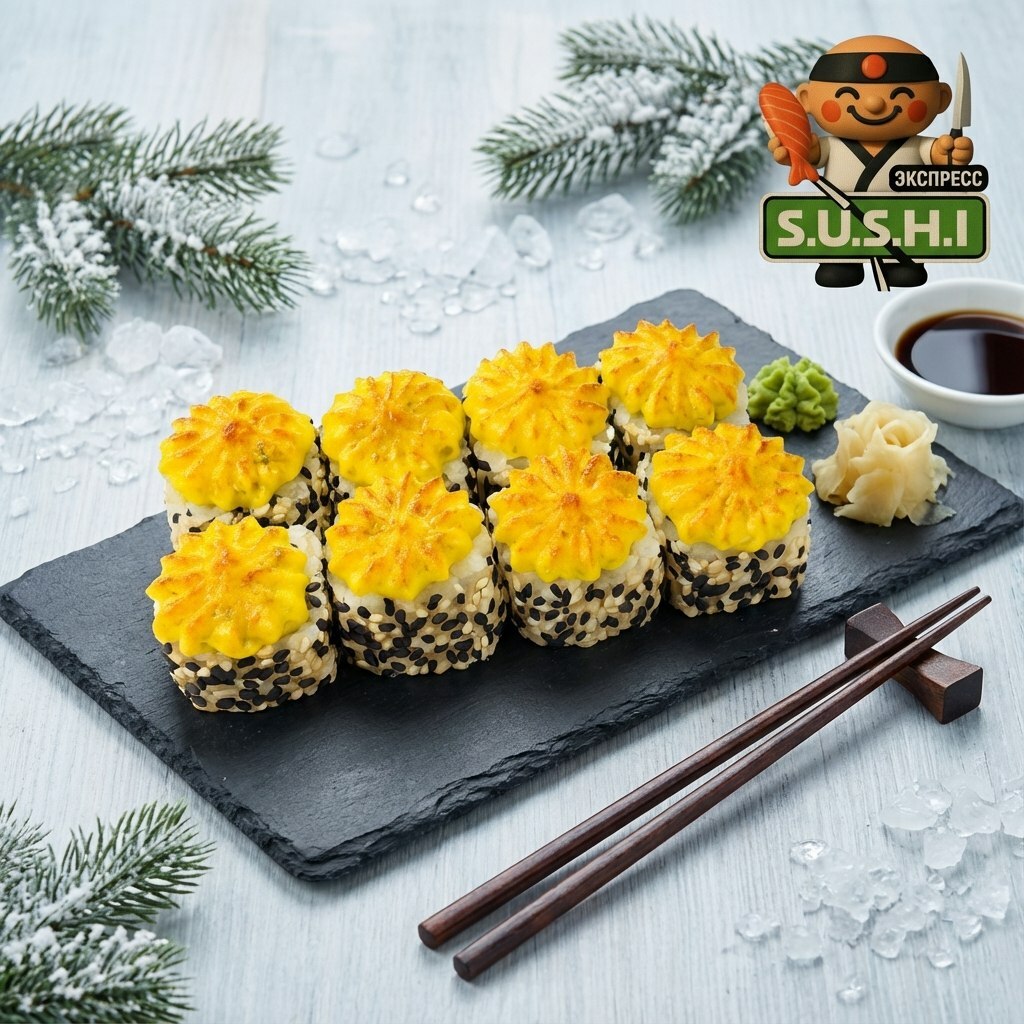 Хот Калифорния 8 шт. Описание: Хрустящий теплый ролл в кляре с нежным снежным крабом, кремовым авокадо и свежим огурцом. Украшен пикантным спайси соусом. Идеален для ценителей ярких вкусов и теплых текстур. Вес: 250–260 г. Калорийность: 360 ккал. БЖУ: 10 г белков, 12 г жиров, 50 г углеводов. Цена: 690 руб.